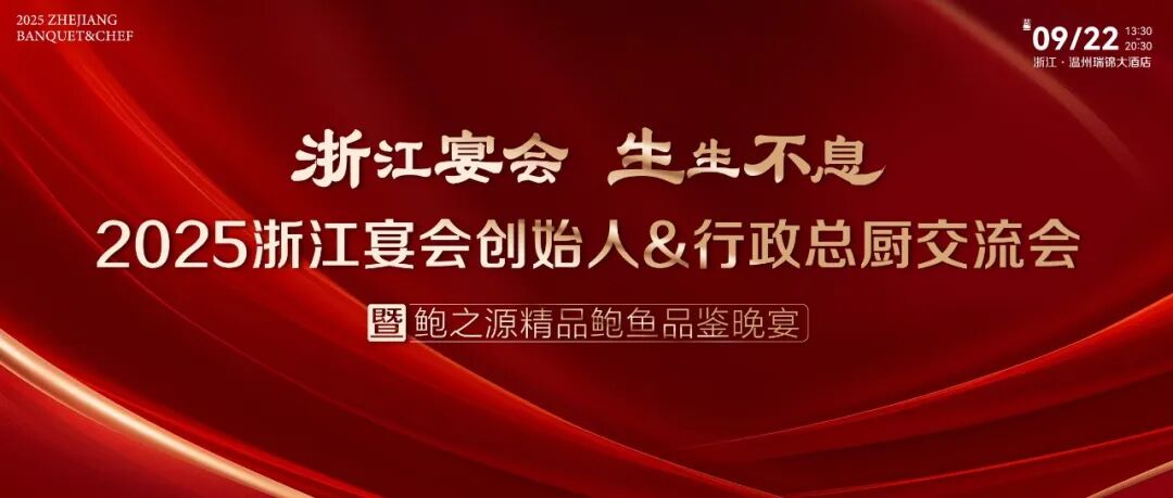 2025浙江宴会创始人&行政总厨交流会,将于9月22日(周一 13:30-20:30),在浙江·温州瑞锦大酒店举办。