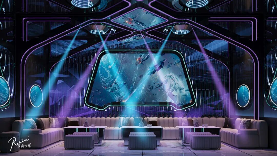 以建筑思维将声、光、影融为一体,采用线性、镜面、强质感的材料,炫丽动态的光源提升空间气质。