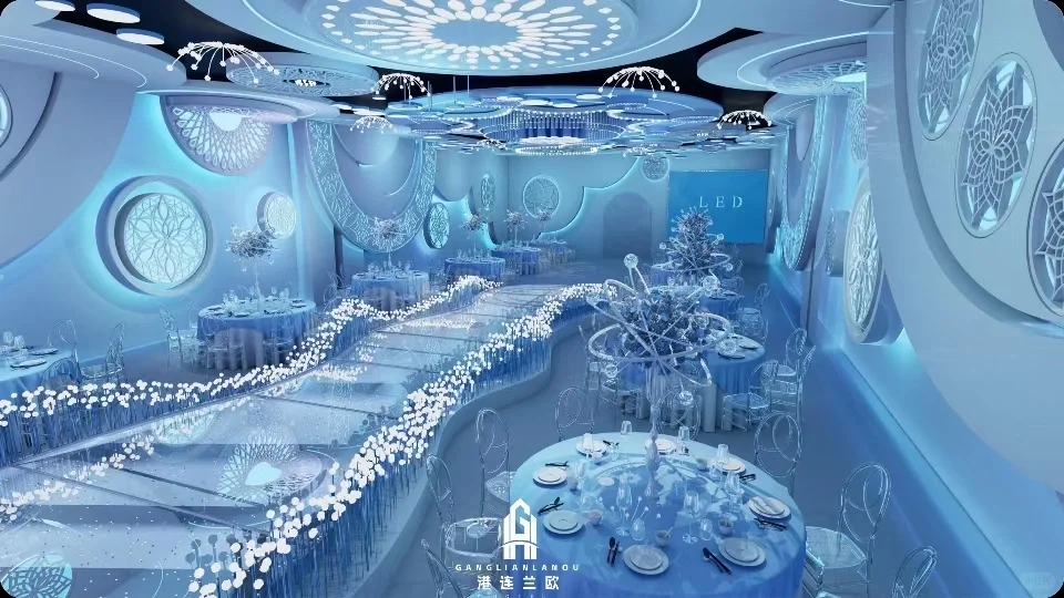 十个宴会大厅风格迥异、主题鲜明,既兼容了科技智能、互动沉浸式的体验感,同时也不乏多维立体、梦幻浪漫的唯美效果。