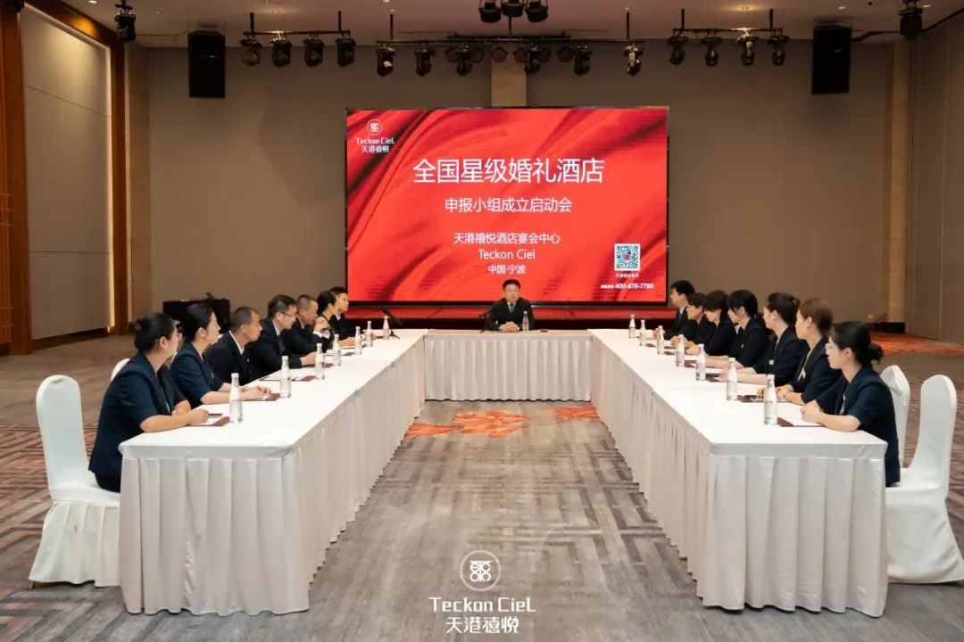 7月22日,海曙天港禧悦酒店申报小组成立启动会召开,这标志着酒店正式开启了参与全国星级婚礼酒店评定申报工作,全力争创全国星级婚礼酒店。