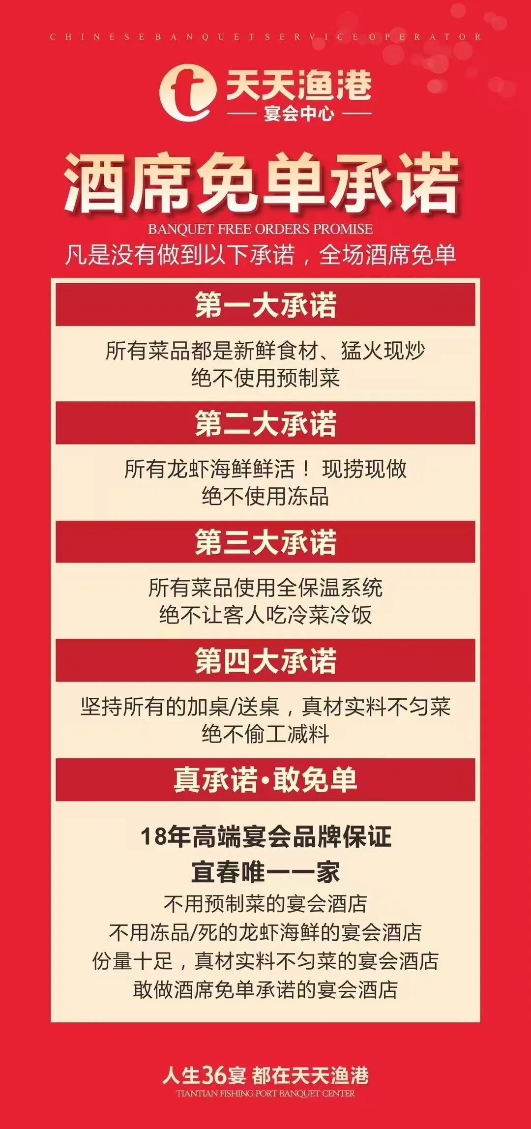 天天渔港酒店创始人非常自豪的说:“我们是宜春唯一一家经营18年大型餐饮企业,也是全国唯一敢做酒席免单承诺的企业?!?nbsp;