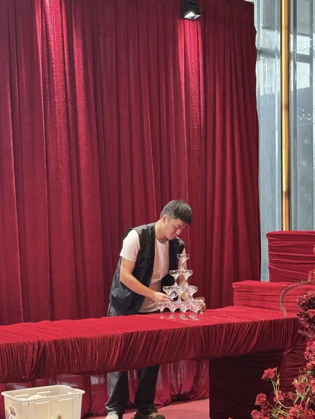 与柏男一样,在嘉兴另一家酒店的宴会厅内,婚庆执行阿豪目送最后一批宾客散去,紧绷的神经终得片刻松弛。这场“战役”的序幕早在一天前就已拉开,前夜凌晨物资装运;当日清晨六点准时抵达现场;紧接着是连续不间断的协调、搭建与流程把控。