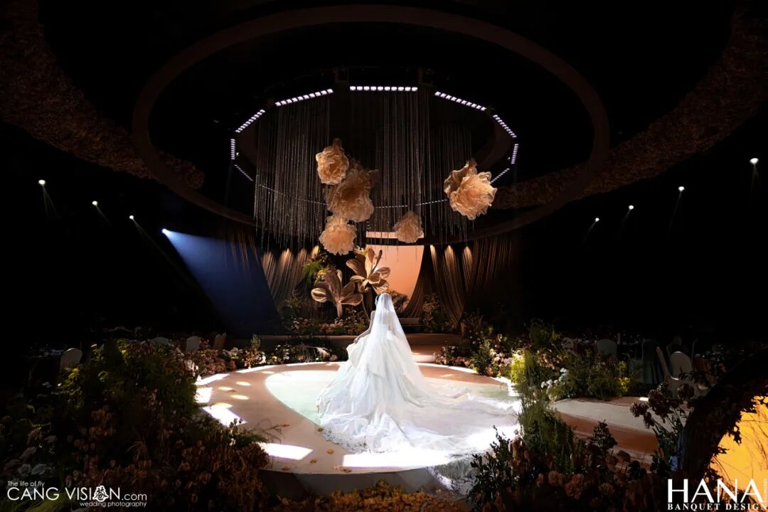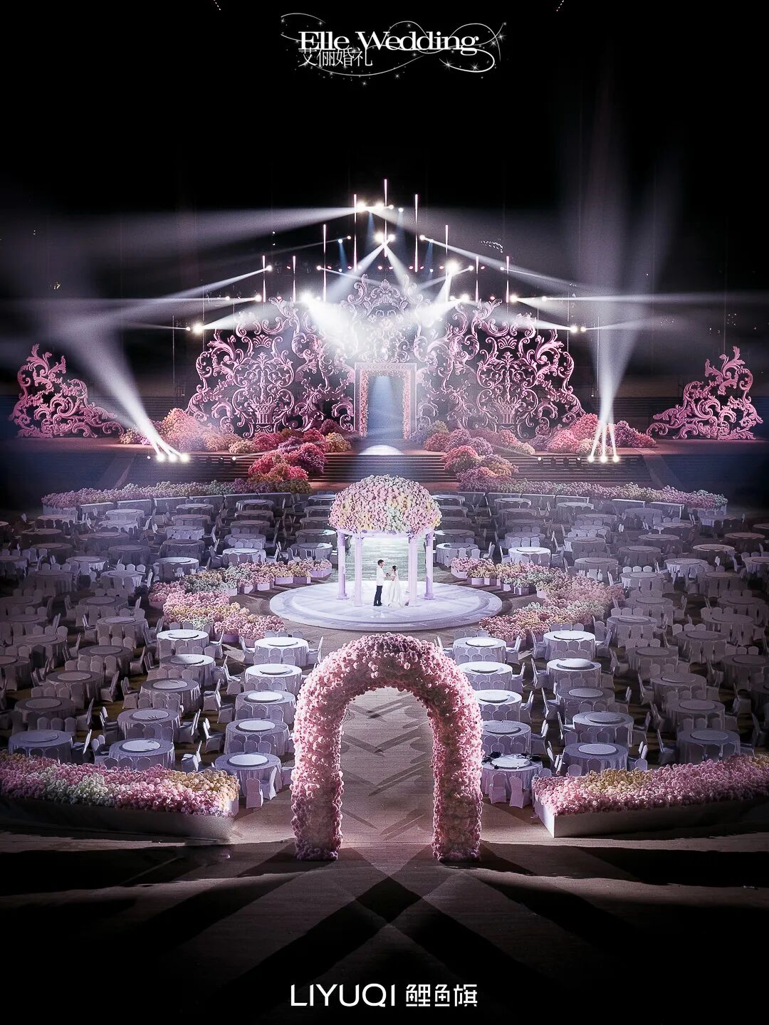 谁说公主梦只能存在于童话里?这场婚礼让我的公主梦想彻底成真!满眼的粉色花艺像揉碎的晚霞,花艺拱门是通往幸福的入口,20米高巴洛克风格的浮雕背景精致又华丽。在灯光的映衬下,每一处都像艺术品。仪式亭被花?;啡?,站在里面的每一秒都像在拍电影。