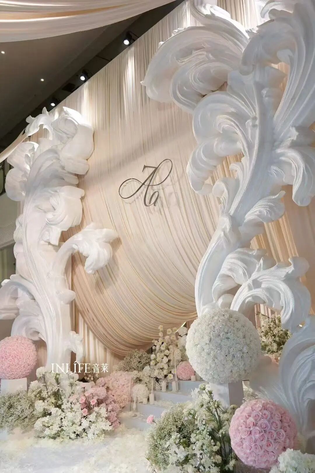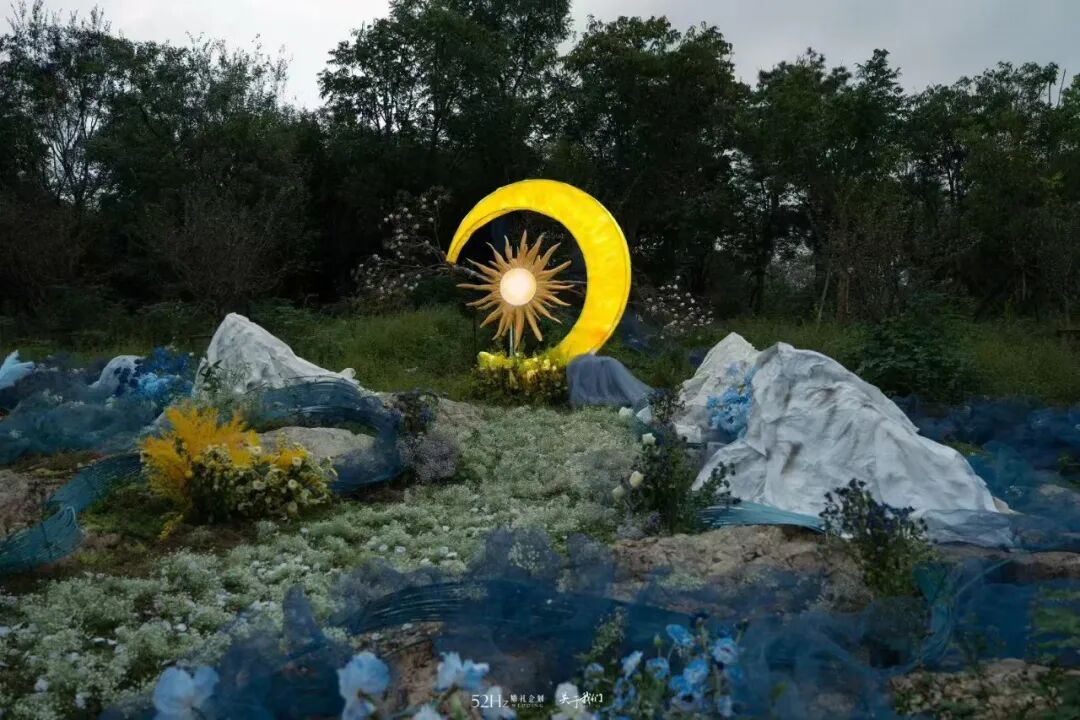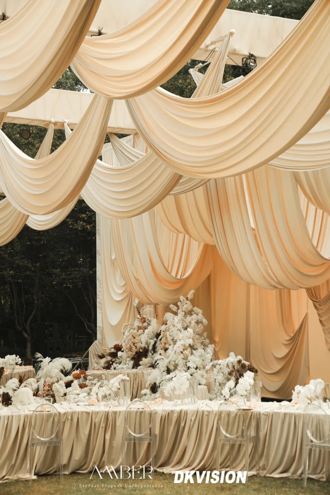 用蕾丝为笔,在自然的画布上勾勒。纯白蕾丝花纹雕琢的艺术装置,满天星堆叠起来的拱门,温柔的氛围感织就最浪漫的美学。