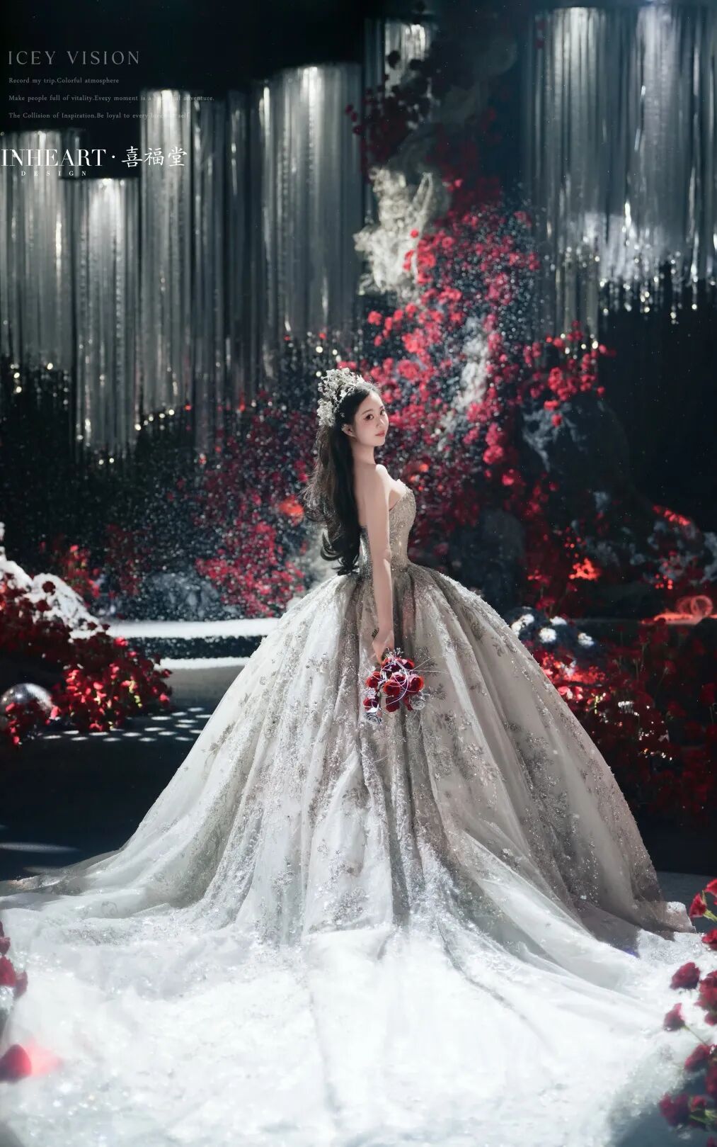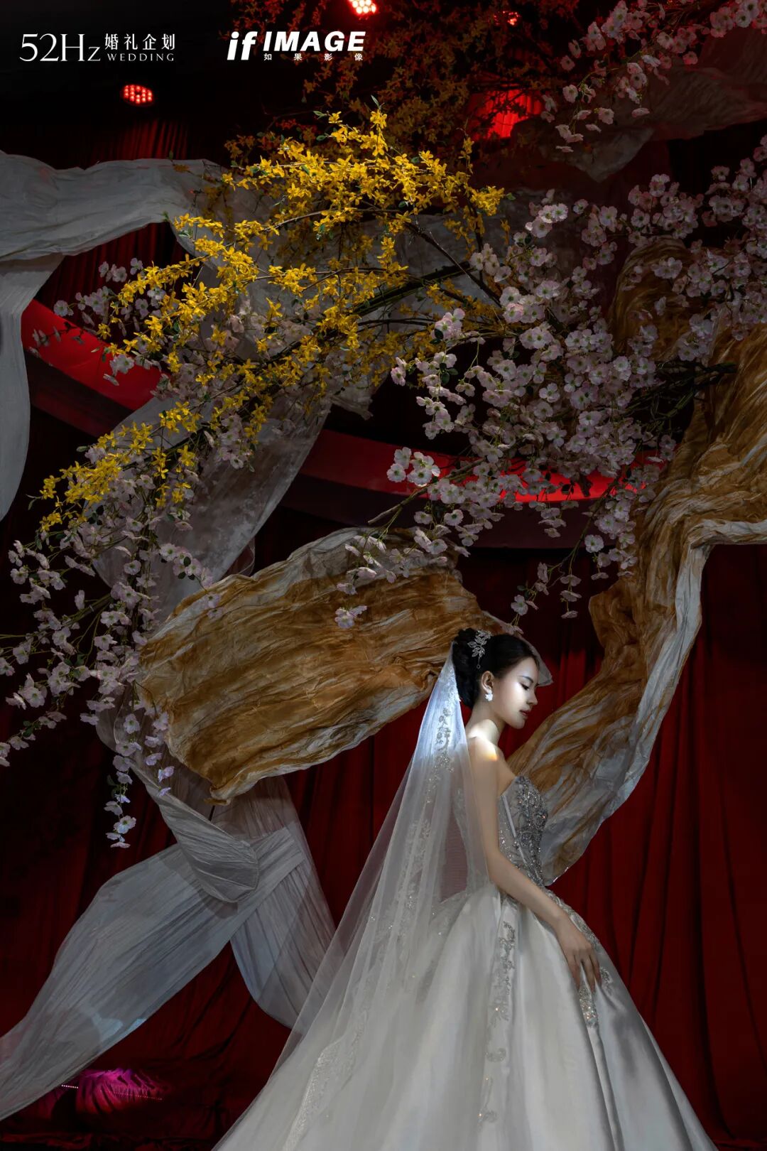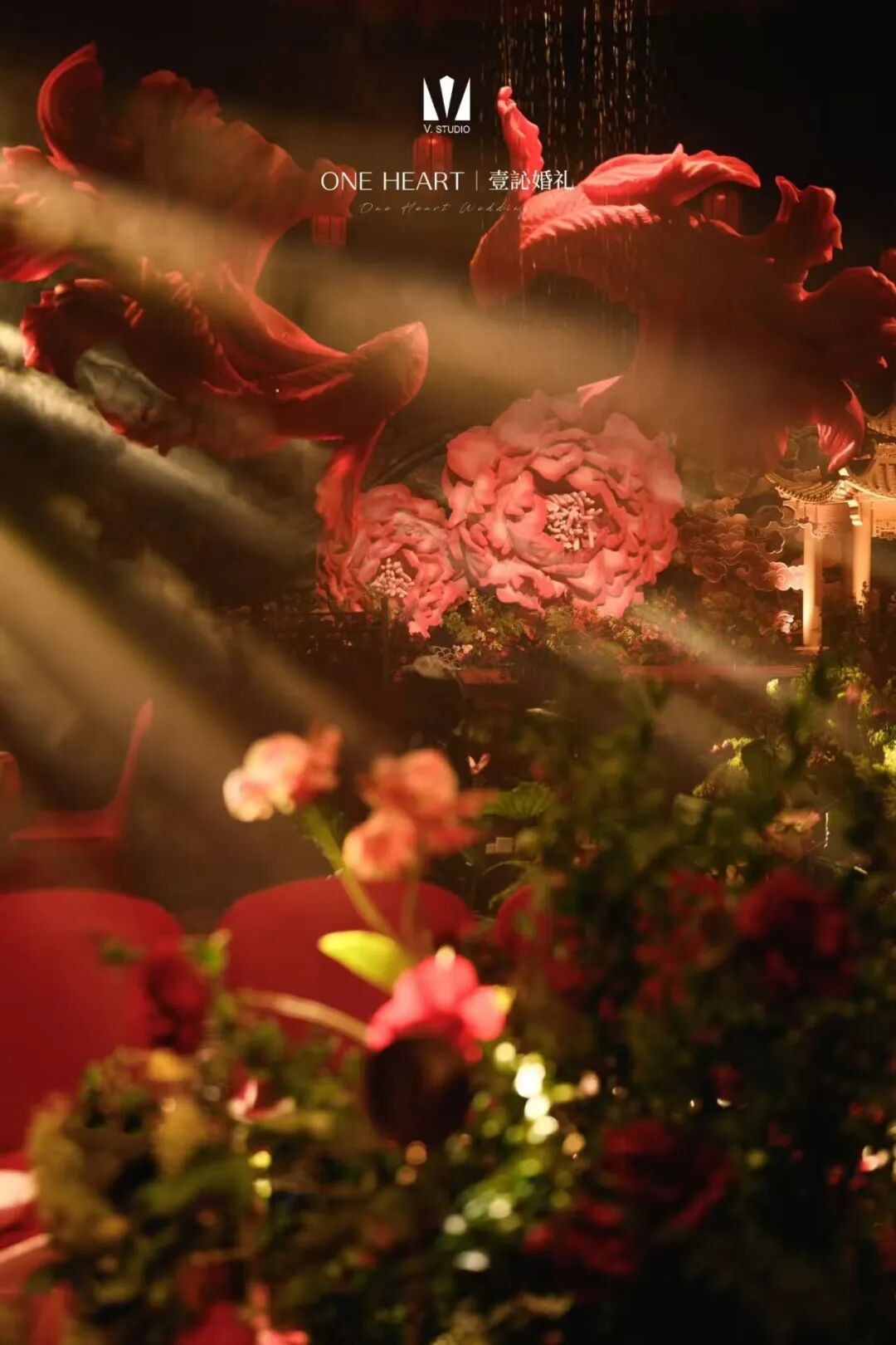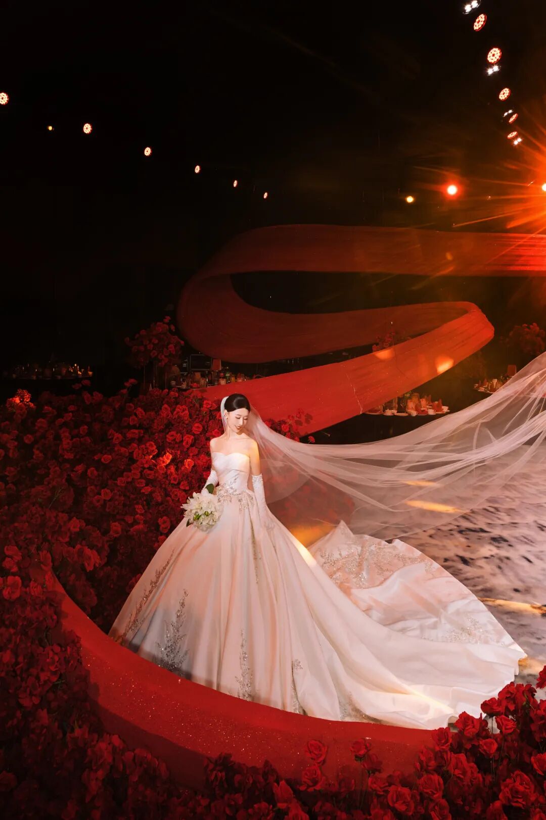 喜福堂用9999朵鲜花玫瑰为内核强大的狮子座新娘,打造了这场以「火山熔岩玫瑰」为概念的主题婚礼。