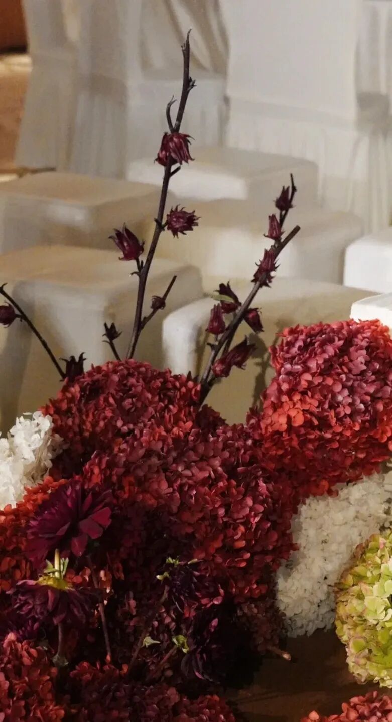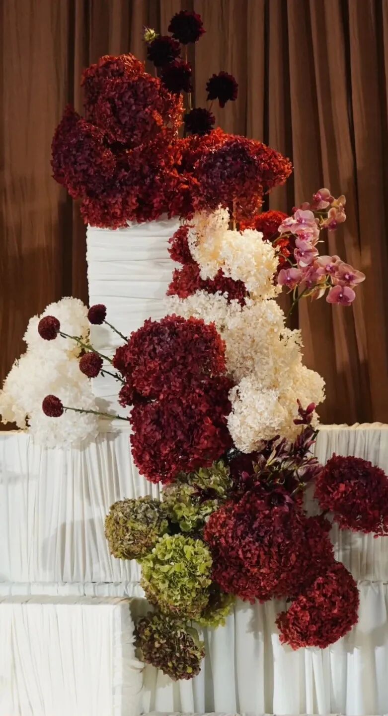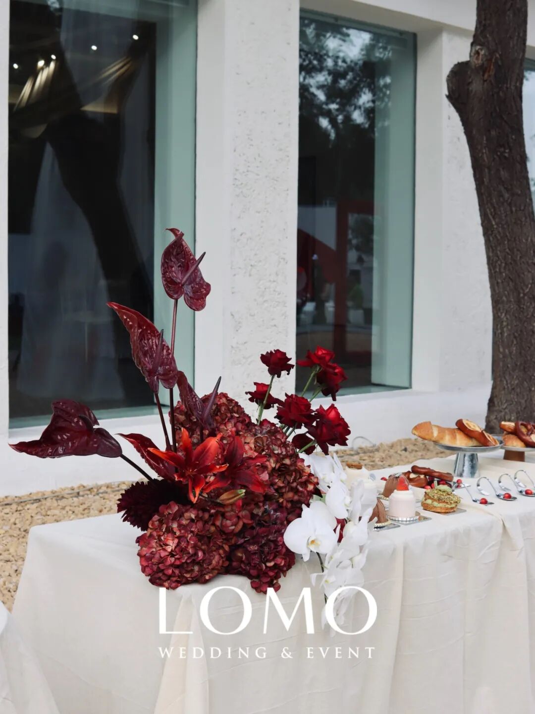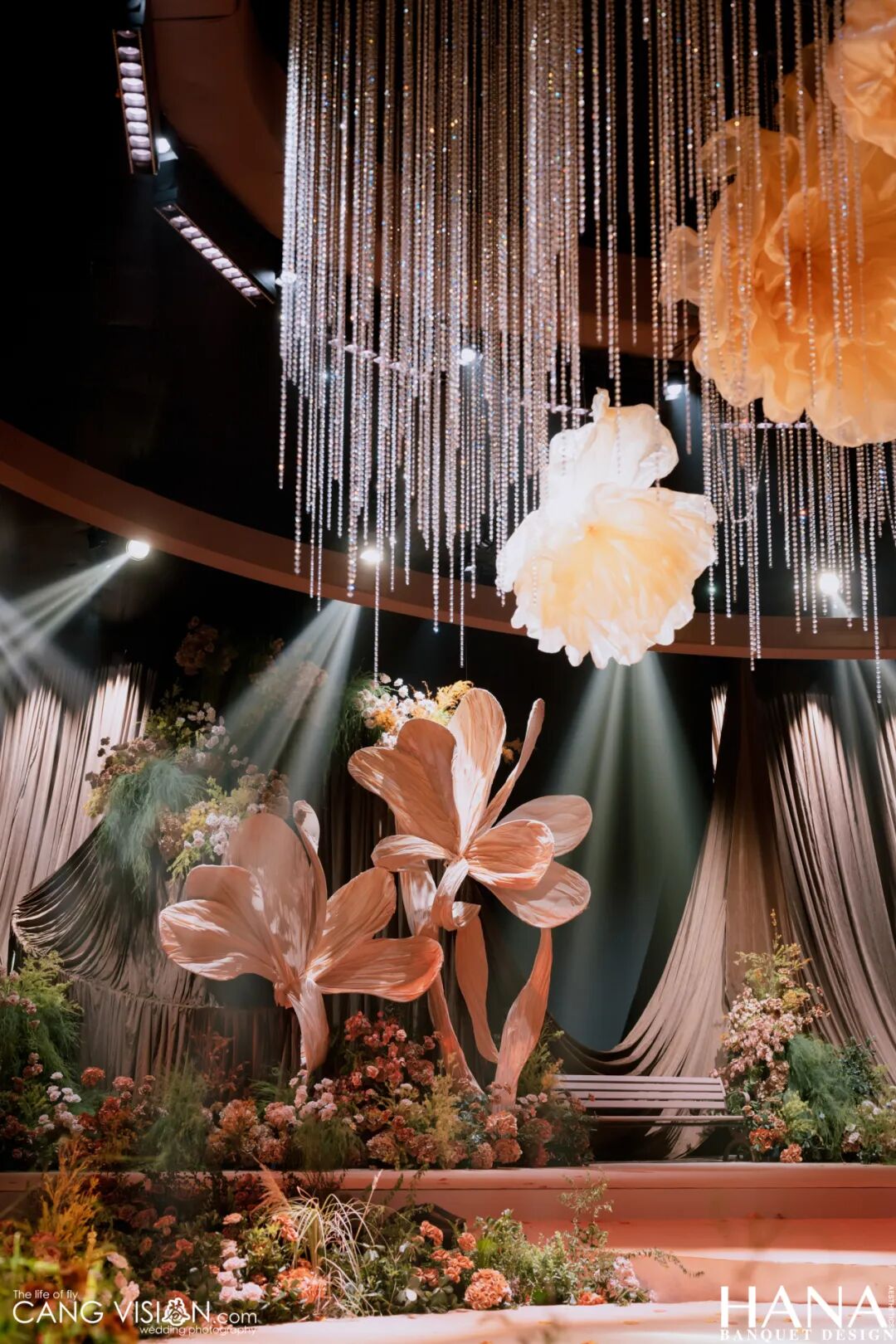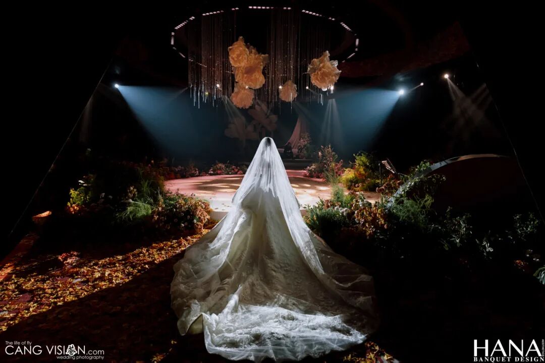喜福堂用9999朵鲜花玫瑰为内核强大的狮子座新娘,打造了这场以「火山熔岩玫瑰」为概念的主题婚礼。