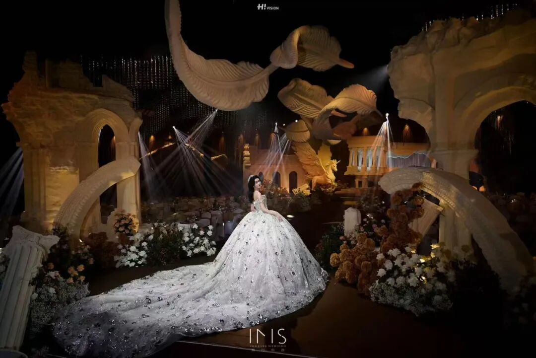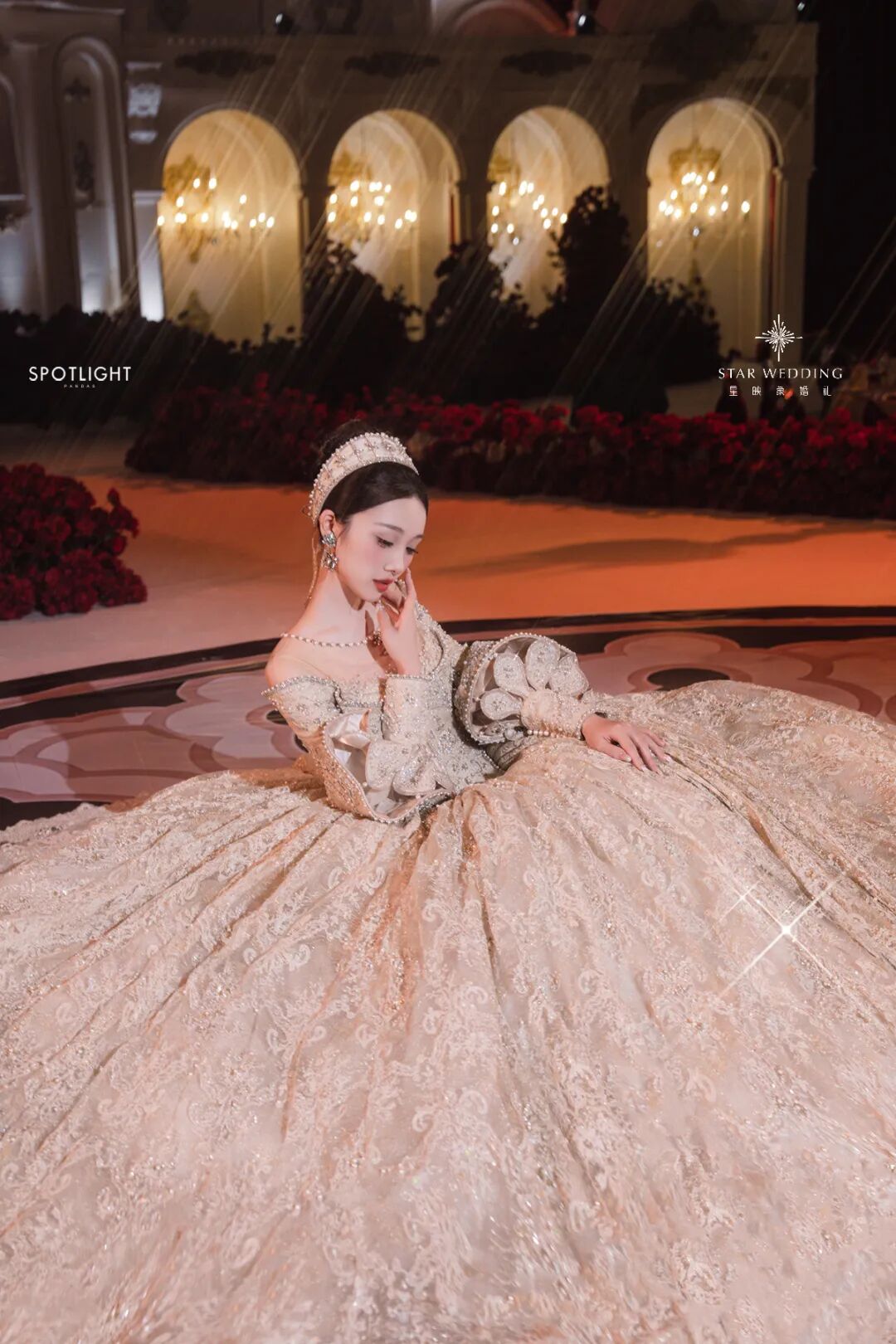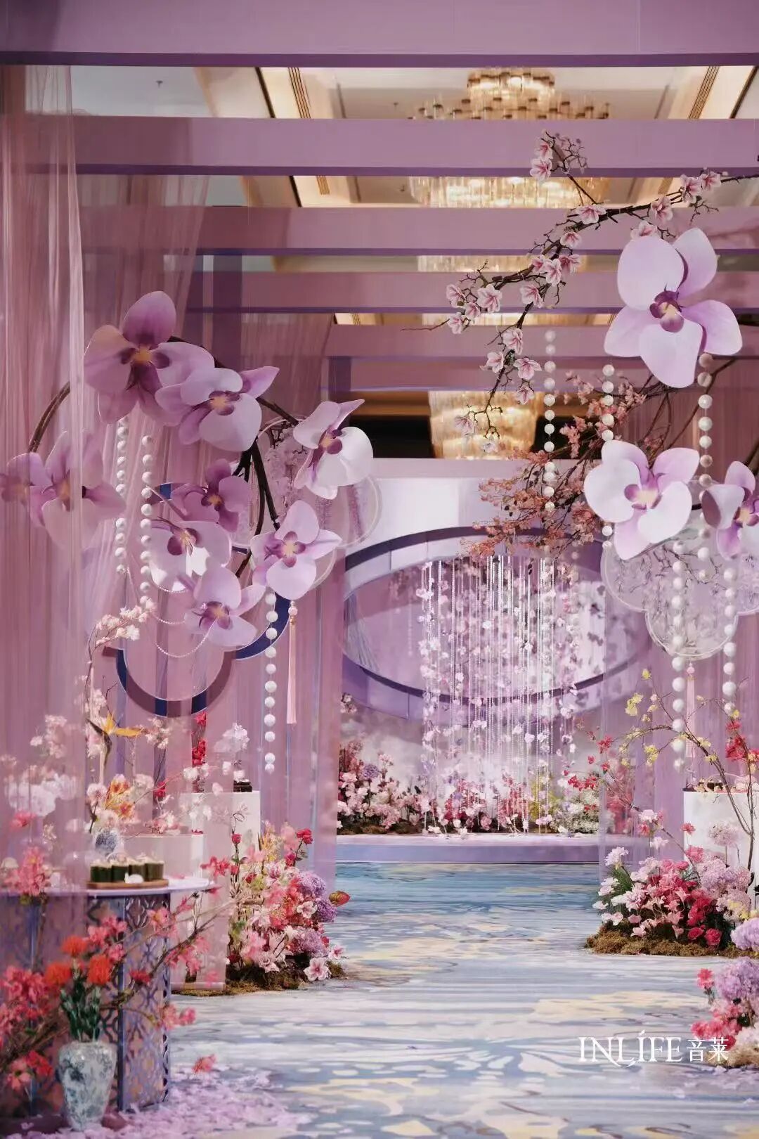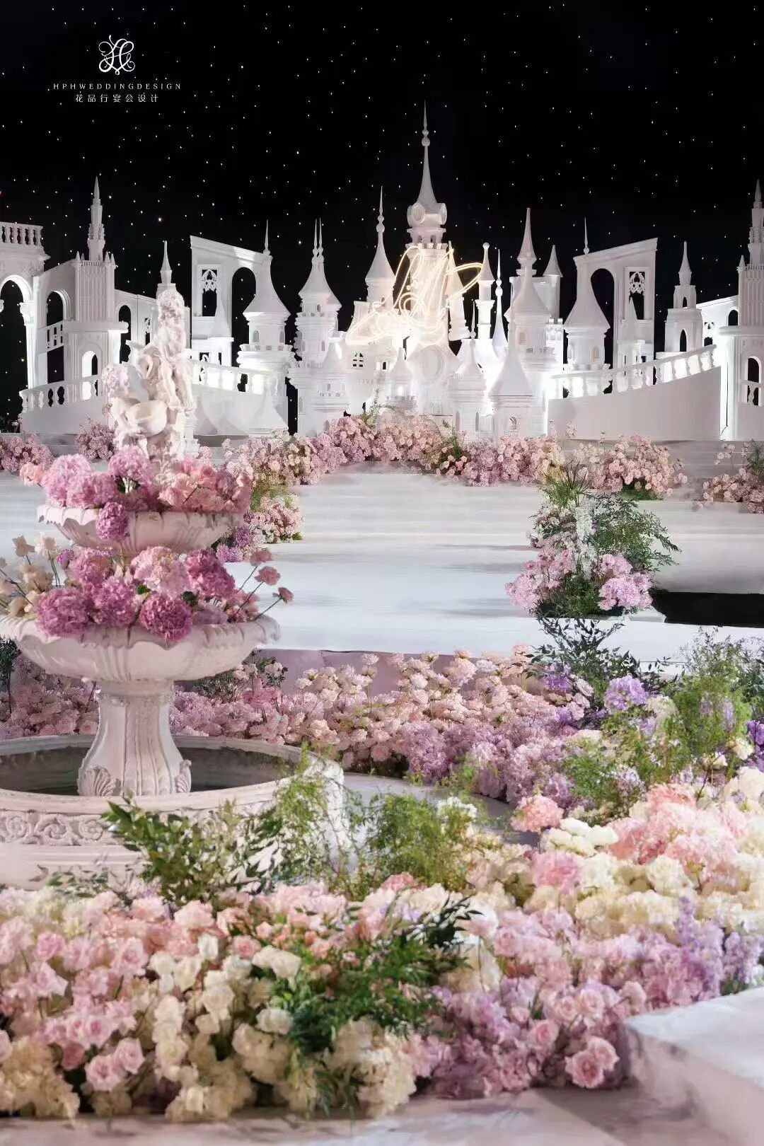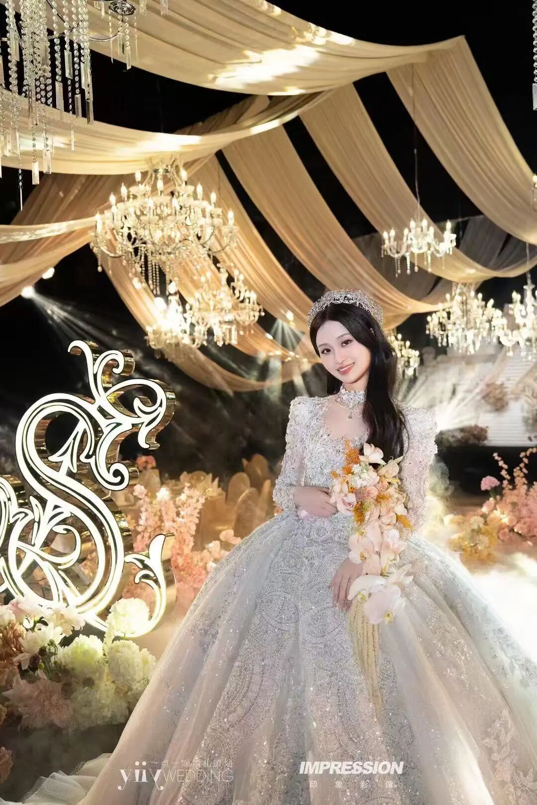 将浪漫的法式宫殿搬进婚礼,梦幻与高级在此交织。粉白花海层叠铺展,水晶灯垂落如雨,折射出柔光流影。翩翩蝴蝶,掠过花间,让梦境的轮廓有了温度与呼吸感。新娘走过花瓣铺成的云端,裙摆晕染整场光影,仿佛坠入一幅粉色油画柔雾灯光下,空气都变得温柔。