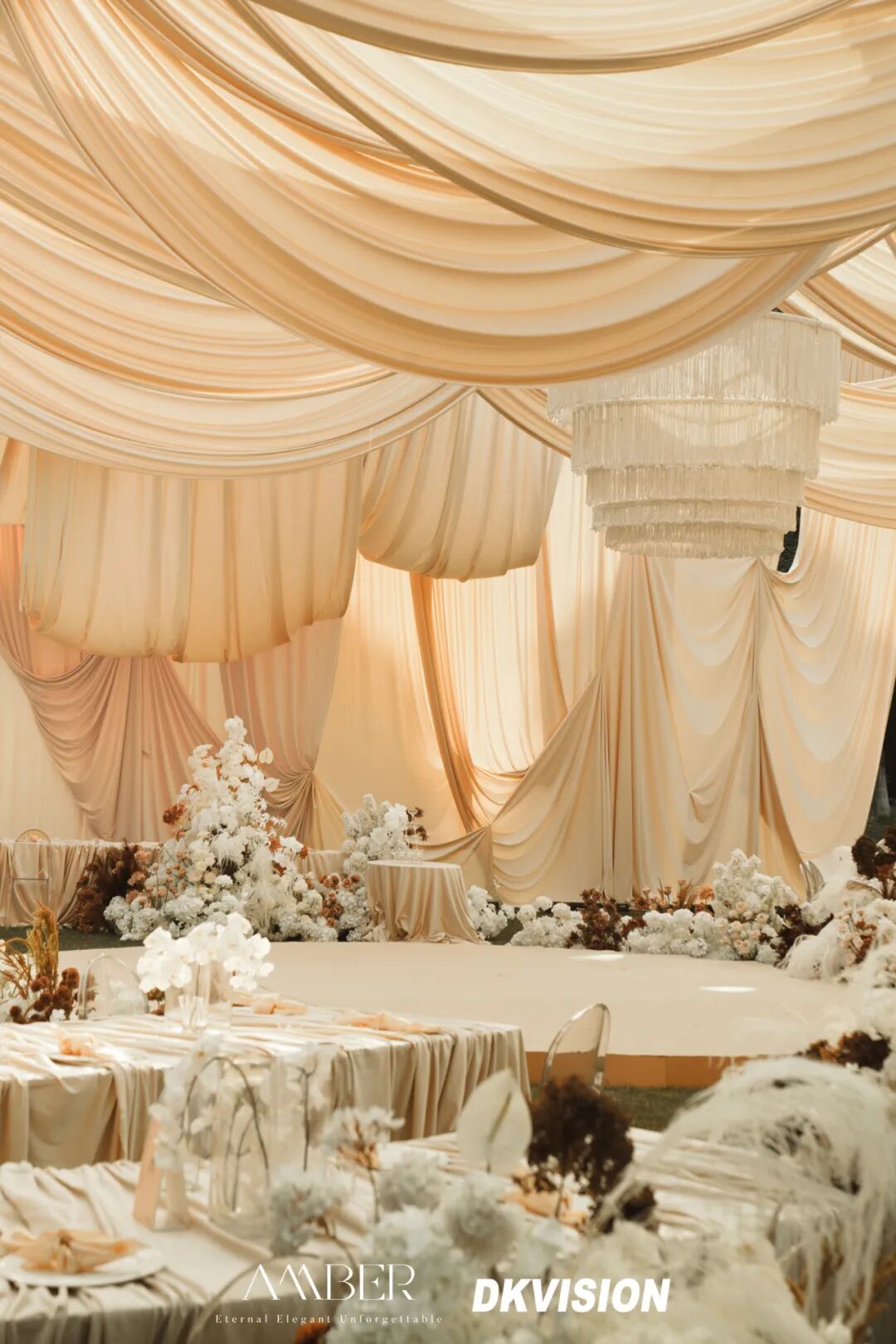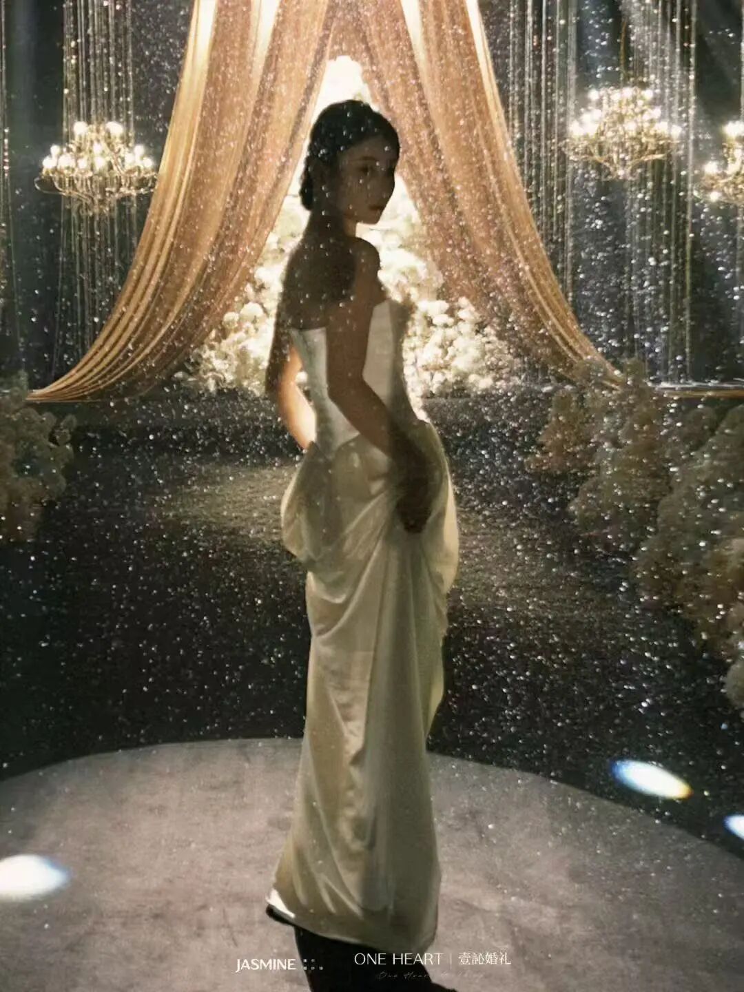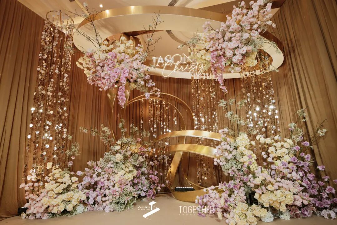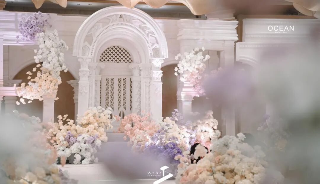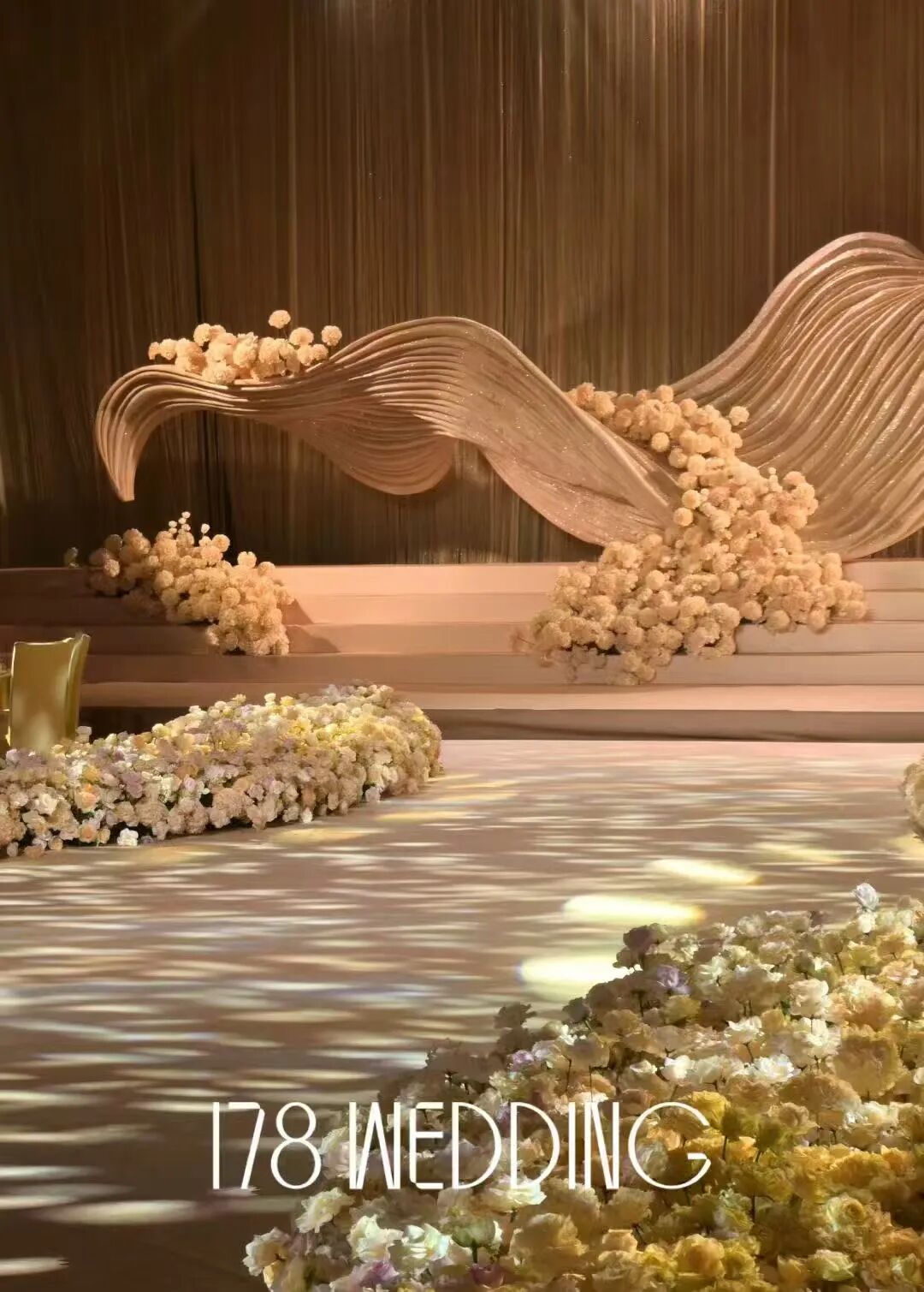 将浪漫的法式宫殿搬进婚礼,梦幻与高级在此交织。粉白花海层叠铺展,水晶灯垂落如雨,折射出柔光流影。翩翩蝴蝶,掠过花间,让梦境的轮廓有了温度与呼吸感。新娘走过花瓣铺成的云端,裙摆晕染整场光影,仿佛坠入一幅粉色油画柔雾灯光下,空气都变得温柔。