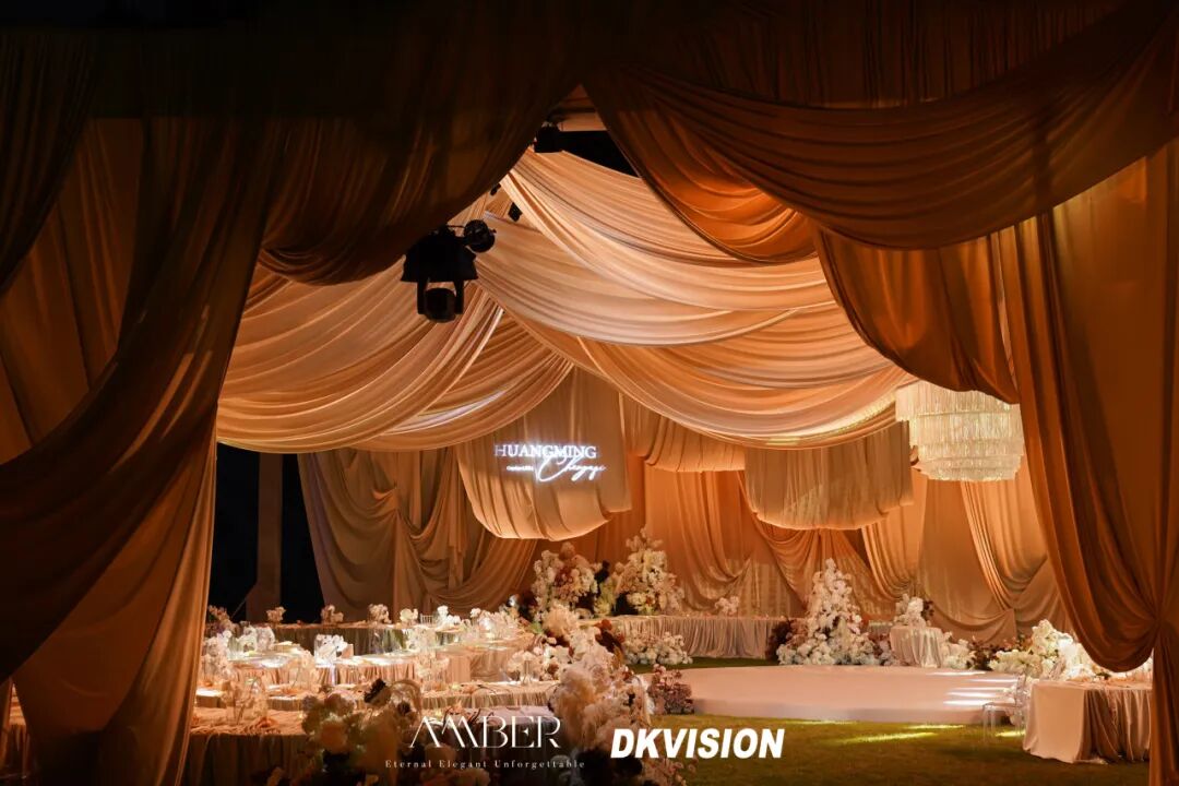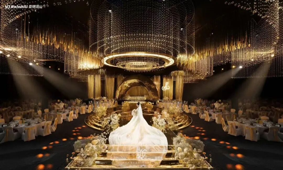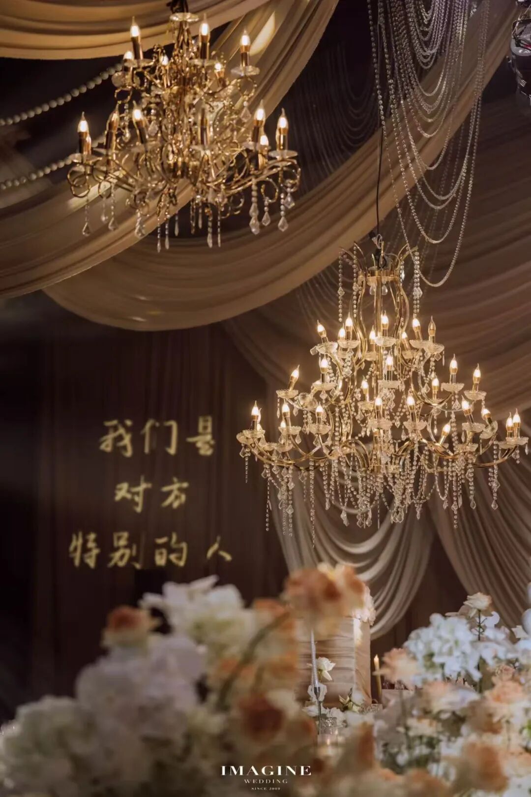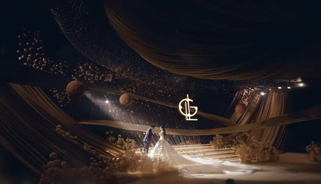 在鎏金闪烁与暗调优雅交织的空间里,时间仿佛放缓了脚步。我们所营造的,是一种无需言说的品质,一种世代相传的品味,一如你们的爱情—在岁月的长河中,沉淀出愈发迷人的光泽。