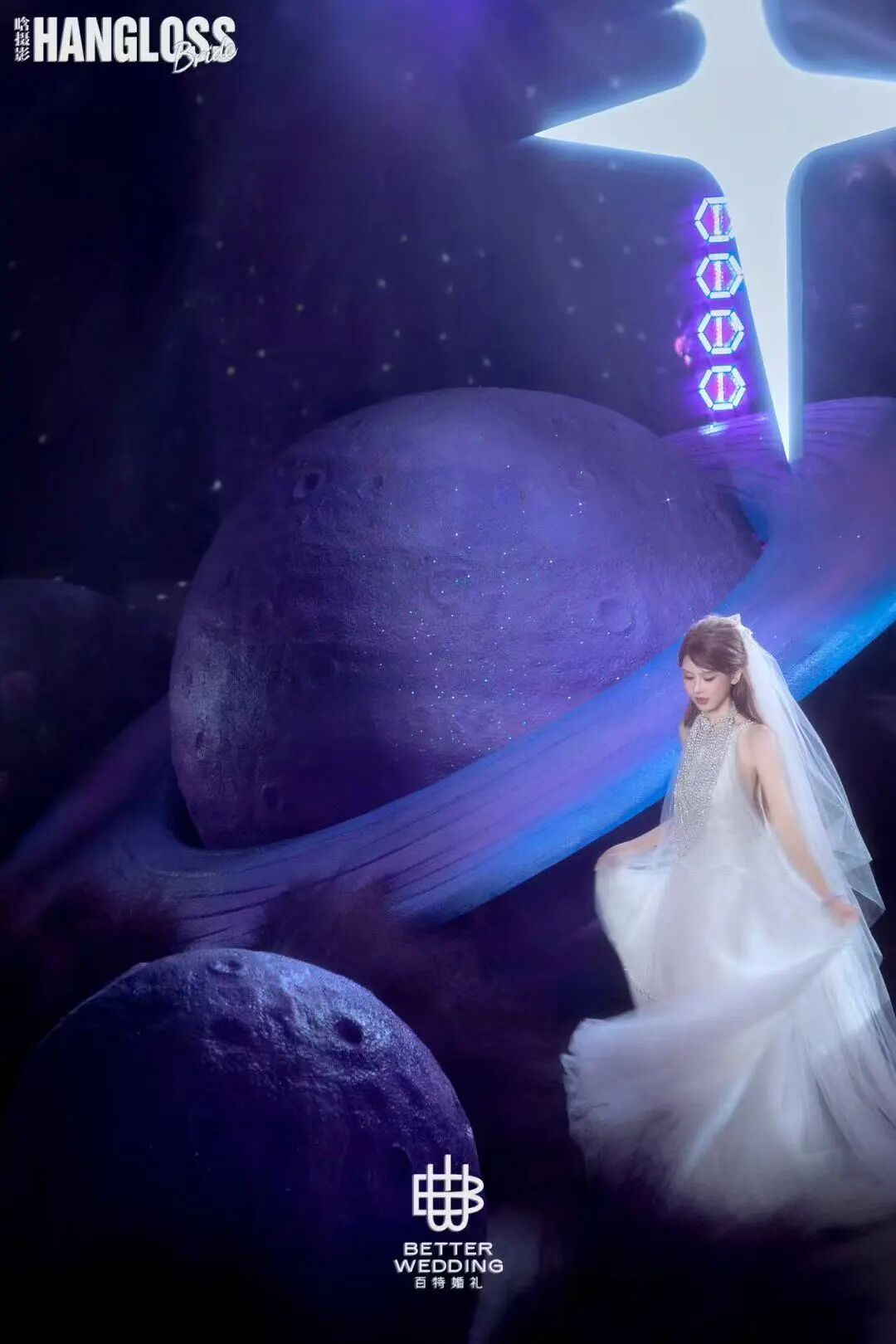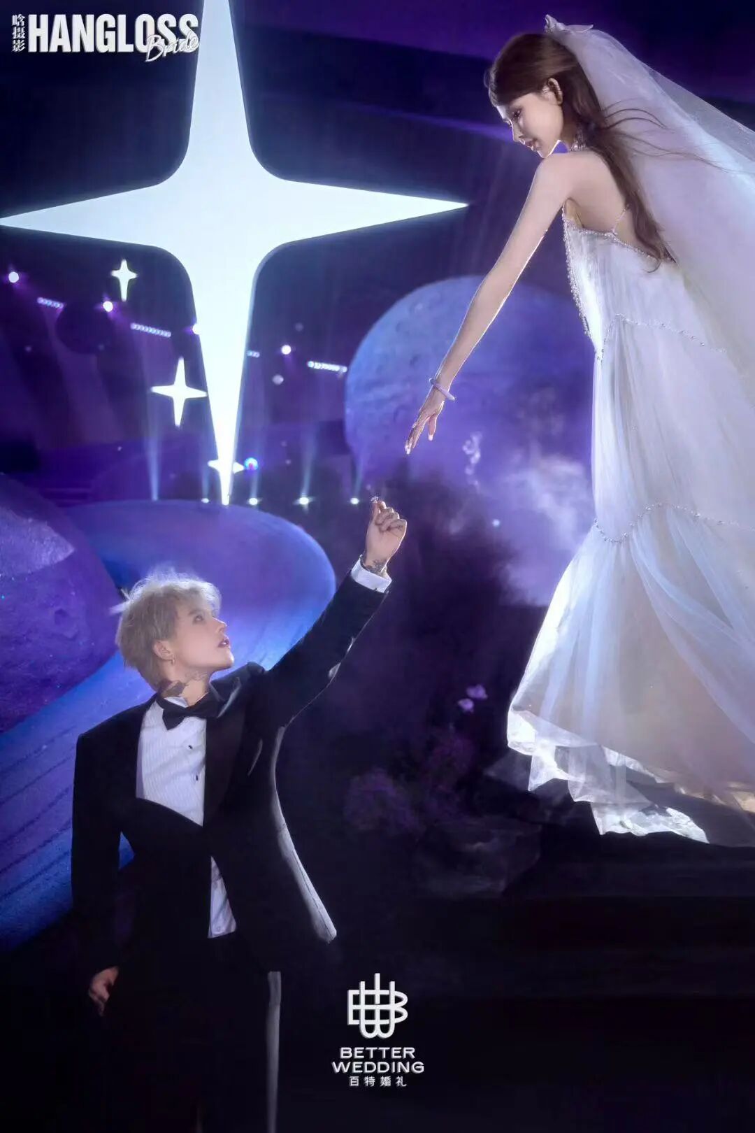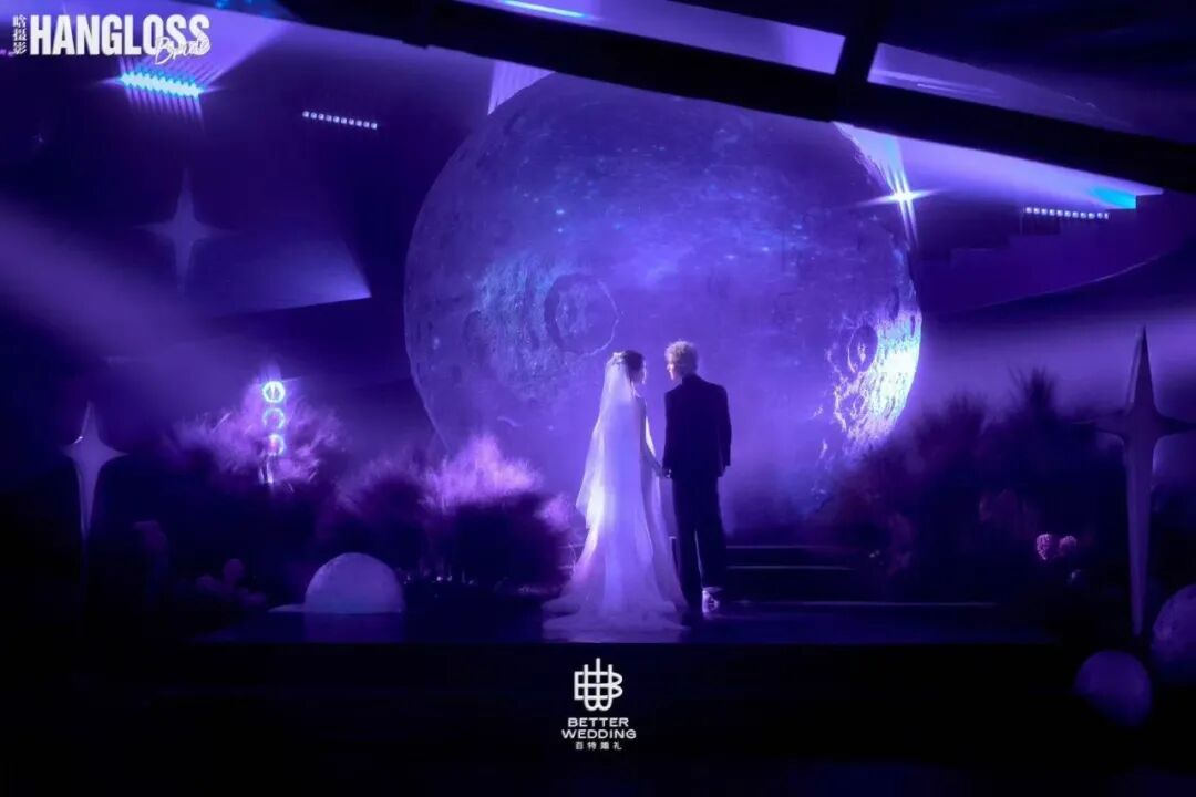 殷世航宇宙级别的求婚,以银河星空打造浪漫宇宙。航子说曾经做过一个梦,梦里面,他在一片停滞的星空里向小美求婚。今天百特将梦中的场景还原到现实世界,紫色穹顶之下,星河流转,盛满浪漫与美好。