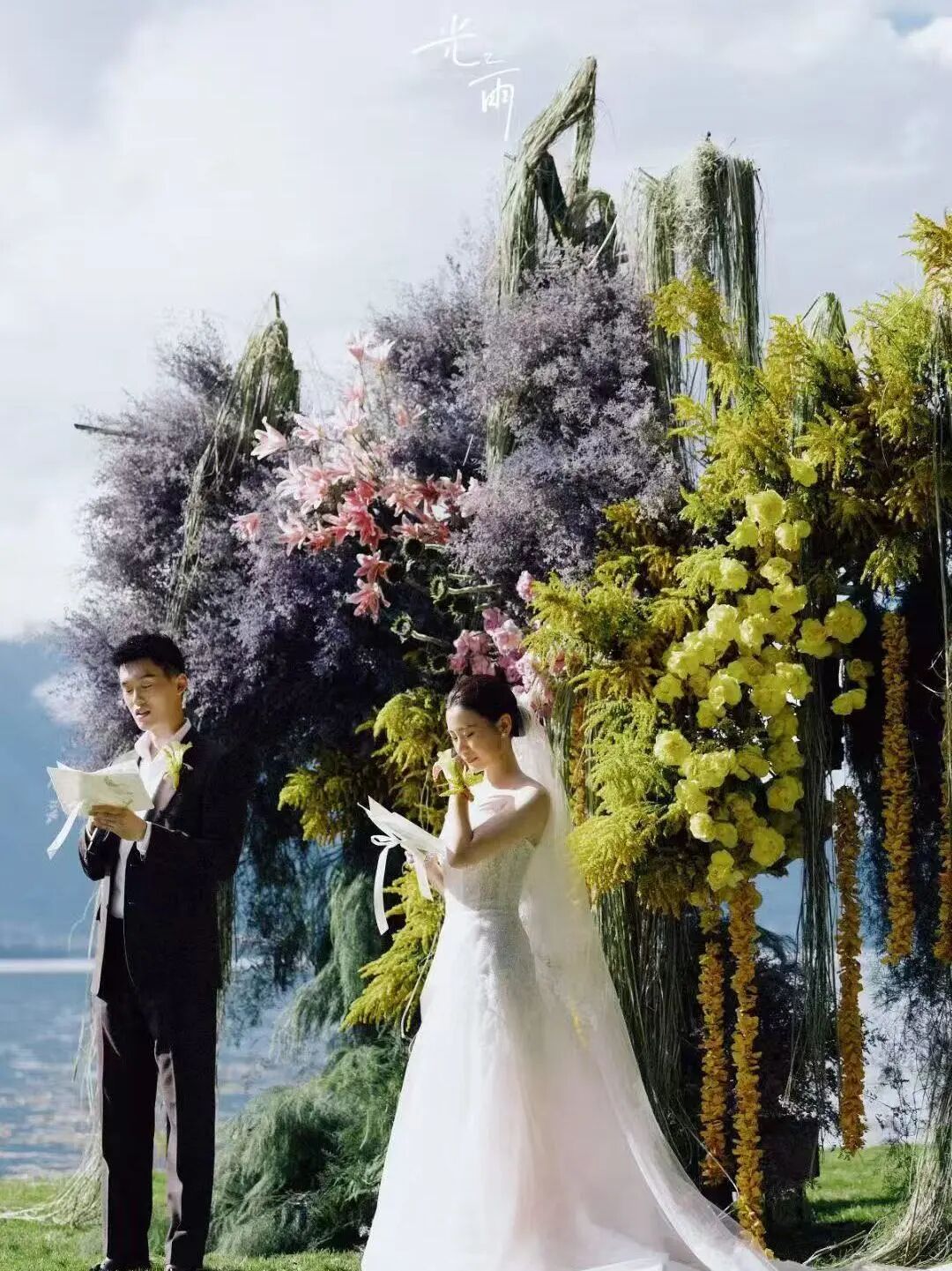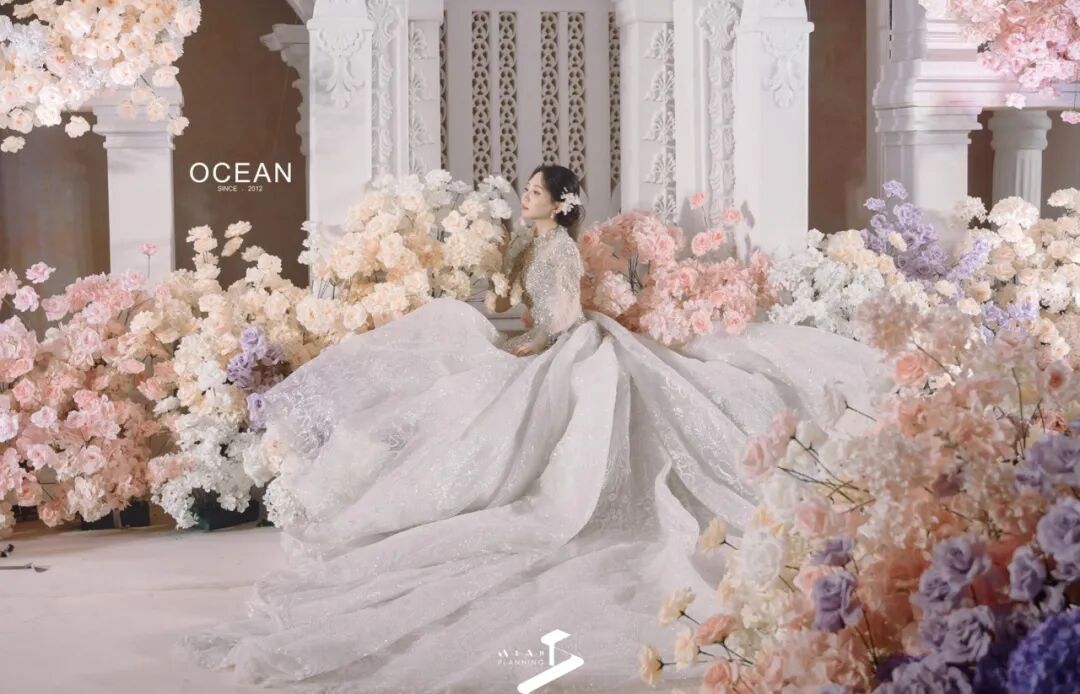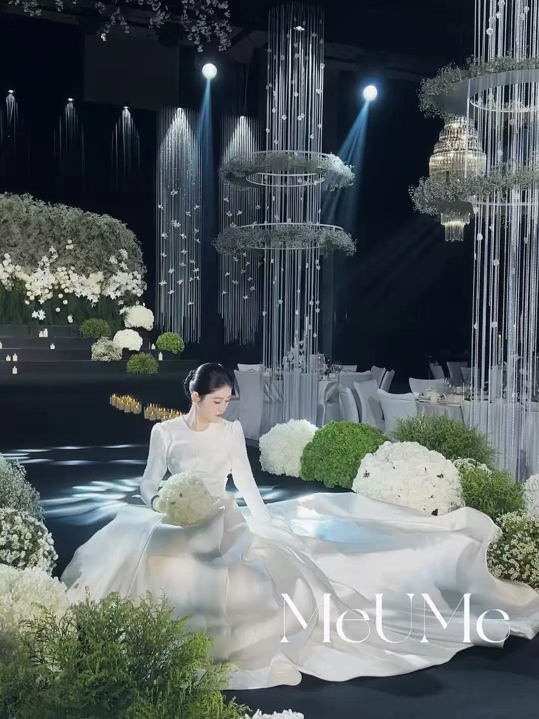 这真的是幻想过无数遍的婚礼现场。置身于漫天花海之中,缓缓的走向心爱的男生,这一刻宿命感拉满。